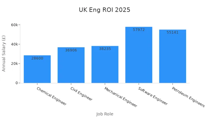 The UK’s engineering sector offers not just competitive salaries but also immense growth opportunities. For instance, software engineers can earn up to £57,972 annually, while petroleum engineers make around £55,141. These figures highlight the strong return on investment for engineering courses. With the UK’s robust economy and demand for skilled professionals, you can look forward to a bright future in this field.