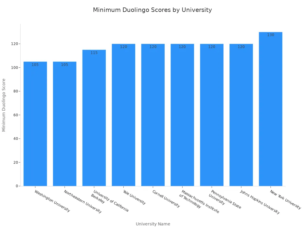 You can see the lowest duolingo scores. They are for different universities in the chart. This guide helps you know what to aim for.